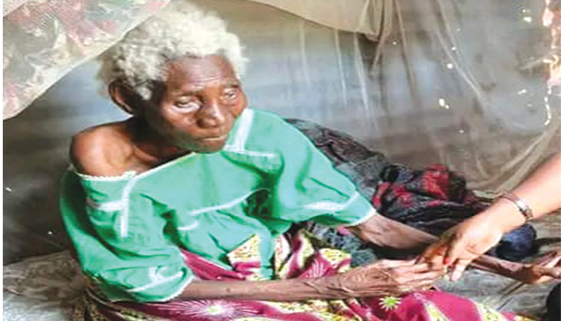 Uma anciã de 104 anos, identificada como Maria Caetano, recebeu na quinta-feira apoio composto por bens alimentares, colchão …